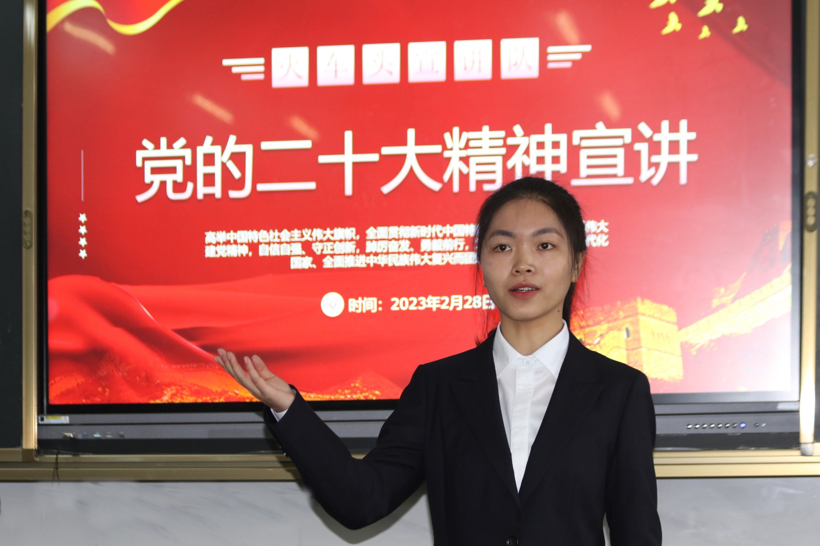 火车头宣讲队队员刘芮廷围绕党的二十大报告中关于“青年强,则国家强”的重要指示精神,以《争做时代新青年》为主题,结合自身经历勉励同学们加强学习、积极进取、求真学问、练真本领,用每一个青春奋斗的故事,接力书写中国梦征程中的生动实践,为实现中华民族伟大复兴的新征程注入蓬勃的青春力量。