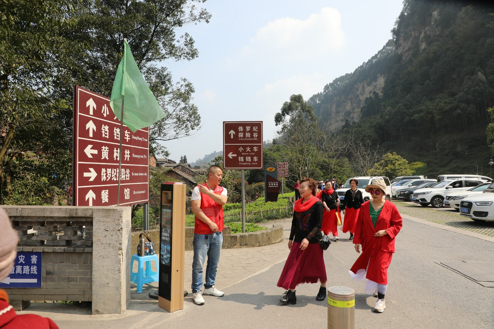 游客们的到来带来了矿山的繁华与热闹,同时也带来了安全、咨询、引导等各方面的压力,尽管川投峨旅公司对此早有准备,但也挡不住游客们赏花观光的热情,道路指挥、观光引导、咨询服务……到处都需要人手。新利(中国)志愿者们迅速奔赴各岗位,参与到旅游服务中,这项活动从3月10日启动到4月9日结束,每周末将派遣28名志愿者总计将有140名志愿者参与到旅游服务的各个环节。
