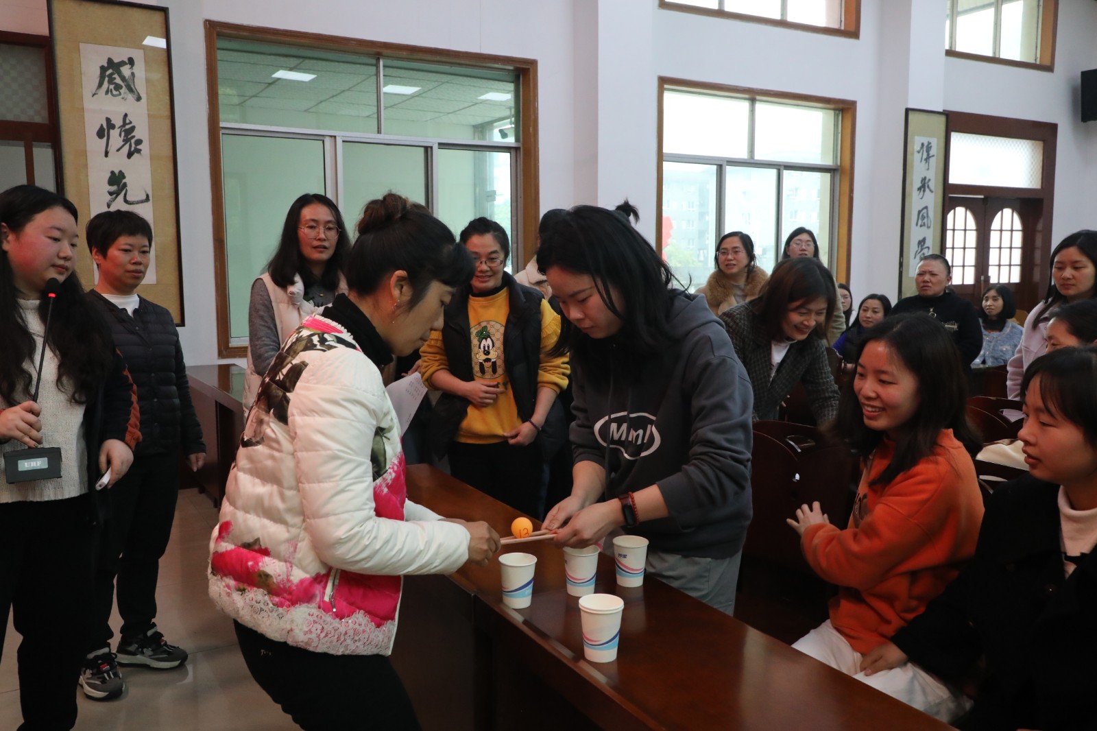 此次竞赛题目类型分为个人必答题、小组必答题、抢答题和风险题,内容涉及《民法典》《劳动法》《妇女权益保障法》《反家庭暴力法》及相关司法解释中对妇女权益保护方面的法律知识,涉及妇女儿童保护、家庭暴力、夫妻财产分割、离婚及子女抚养等方面。其中,风险题需完成相应游戏挑战才可选择进行答题,趣味游戏投杯球、乒乓球运输、叠杯子穿插其中,现场气氛热闹,妙趣横生,欢声笑语不断。
