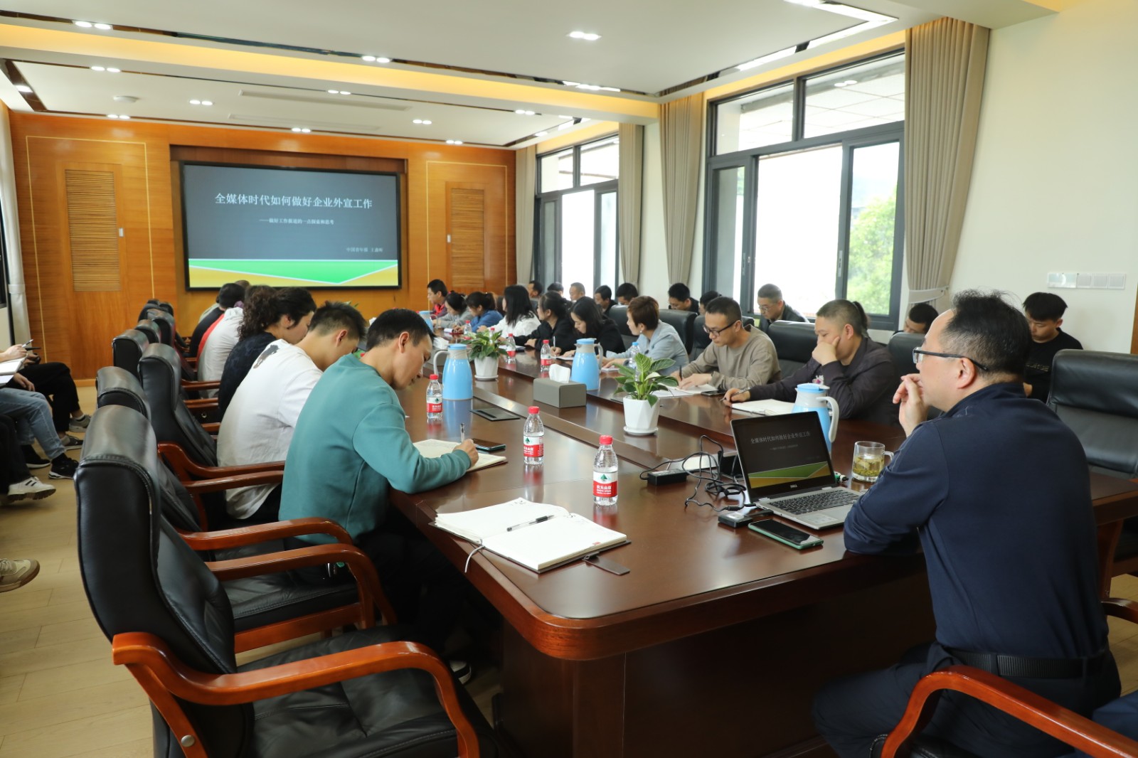 “怎样发掘新闻点……”4月27日,新利(中国)党群部组织开展了新闻写作培训,公司党委副书记、工会主席谢建国围绕新时代如何做好宣传工作与通讯员们作分享交流,公司各单位的办公室主任、通讯员参加培训。
