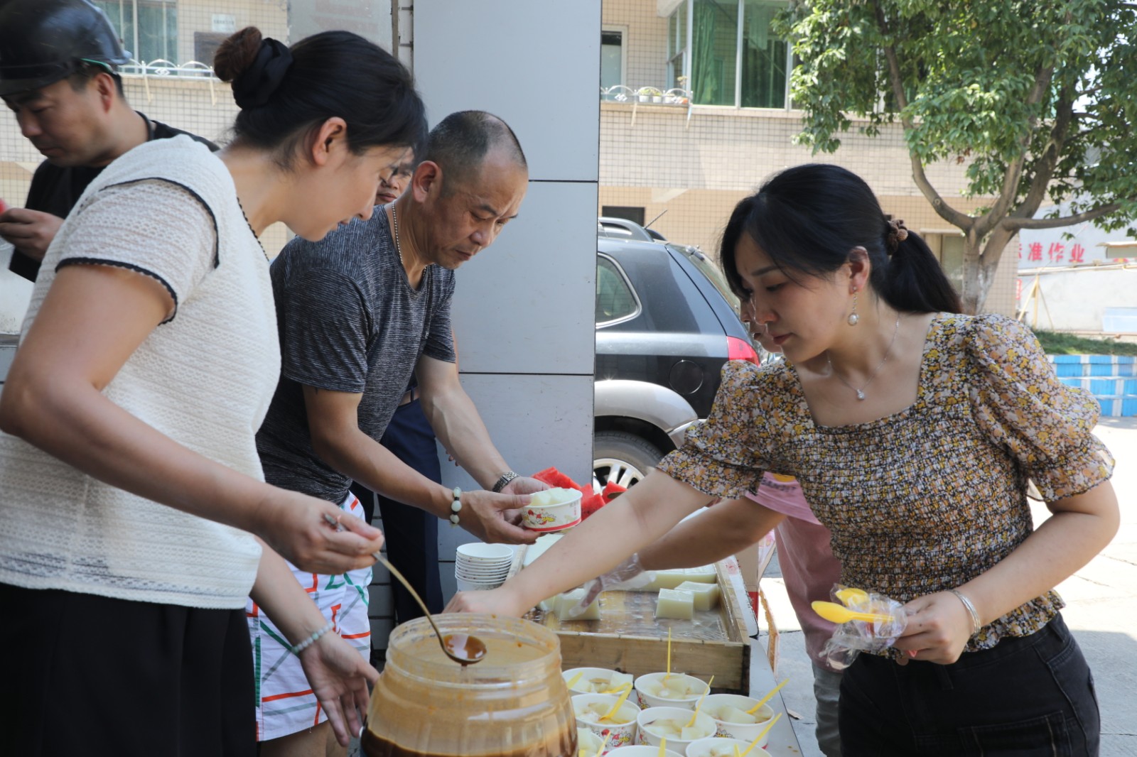 入伏以来,矿区高温潮湿闷热现象十分明显,煤矿炭坝、工业广场、主井上车场、检修车间等场所持续多日超过35℃,最高达到39℃。为避免职工中暑和热射病发生,煤矿女工委组织矿办科室女职工和后勤人员扎实开展送清凉活动,为让更多的职工吃上冰镇的凉糕、冰粉和可口的西瓜,专门选择了离工业广场和车间最近的井口处送清凉。目前,嘉阳煤矿女工委员会已累计现场送冰镇凉糕1120块,冰粉480碗,西瓜640斤。女工委表示只要气温超过35℃都将开展送清凉活动。