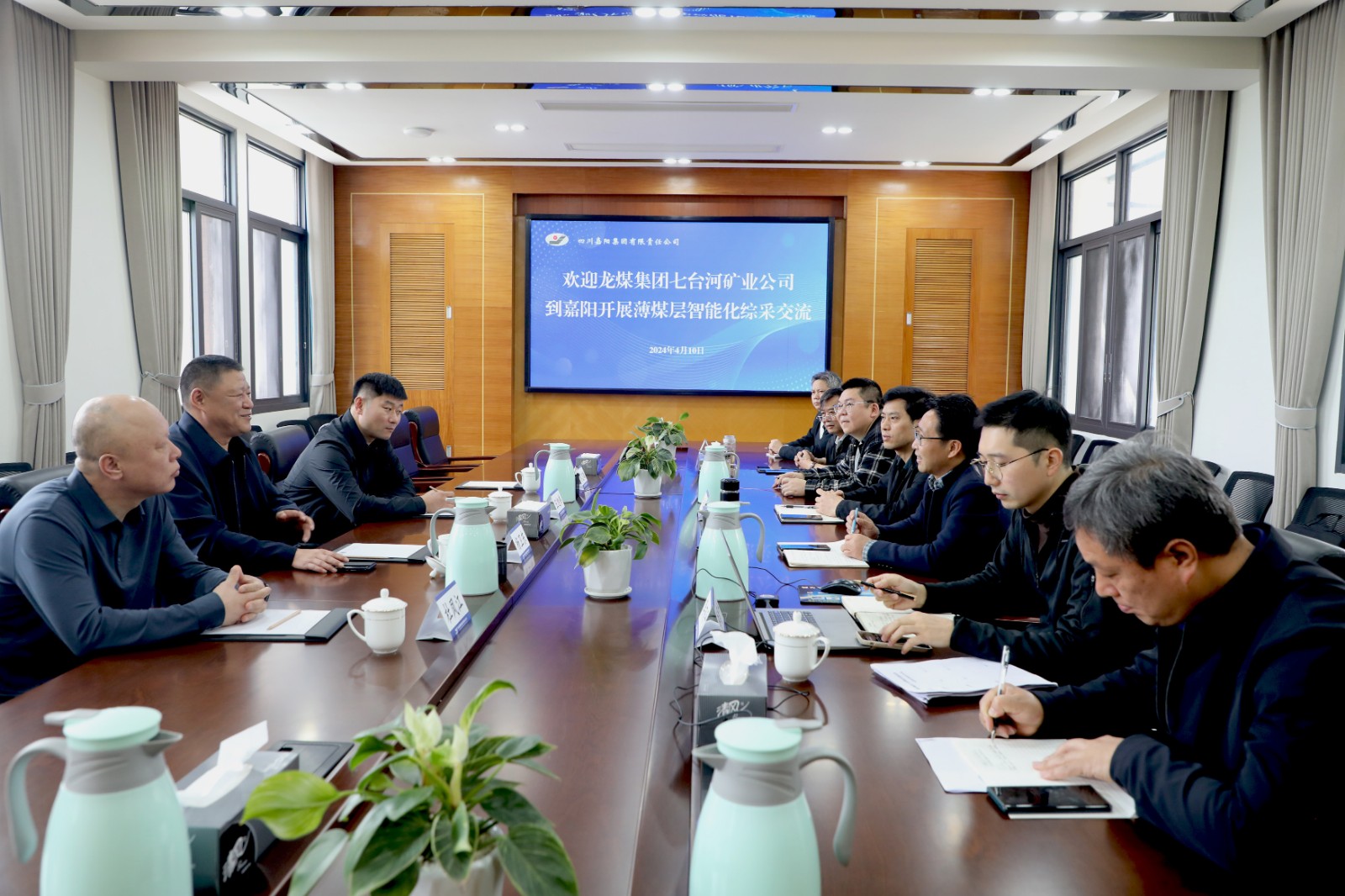 4月10日,黑龙江省龙煤集团七台河矿业到公司交流考察,了解嘉阳煤矿薄煤层智能化综采技术。