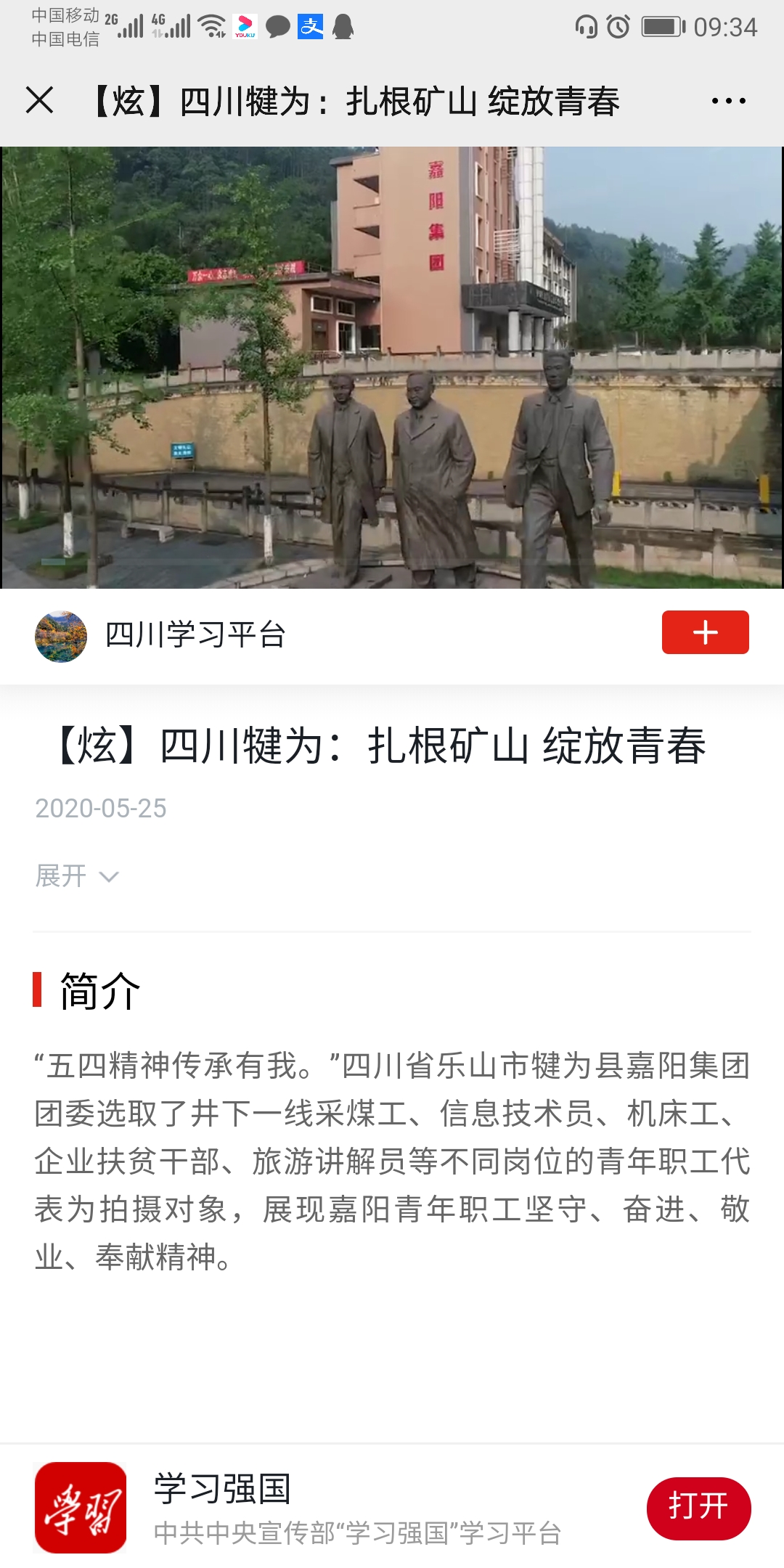 “看,咱嘉阳上‘学习强国’平台了!”由新利(中国)团委组织拍摄的短视频“燃烧的青春”亮相‘学习强国’四川平台,短视频迅速在朋友圈刷屏成为热议话题。