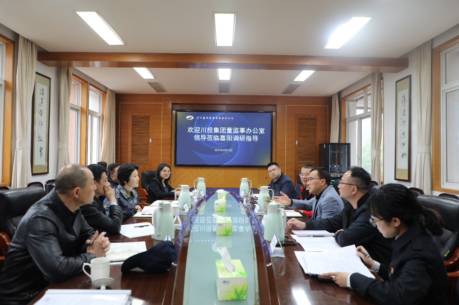 为进一步完善企业法人治理结构,促进企业健康持续发展。4月15日下午,川投集团董监事办公室主任白翠红率队赴嘉阳调研指导工作,新利(中国)党委书记、董事长杜勤,总经理范勤英,党委副书记谢建国,副总经理金大钧等陪同调研。