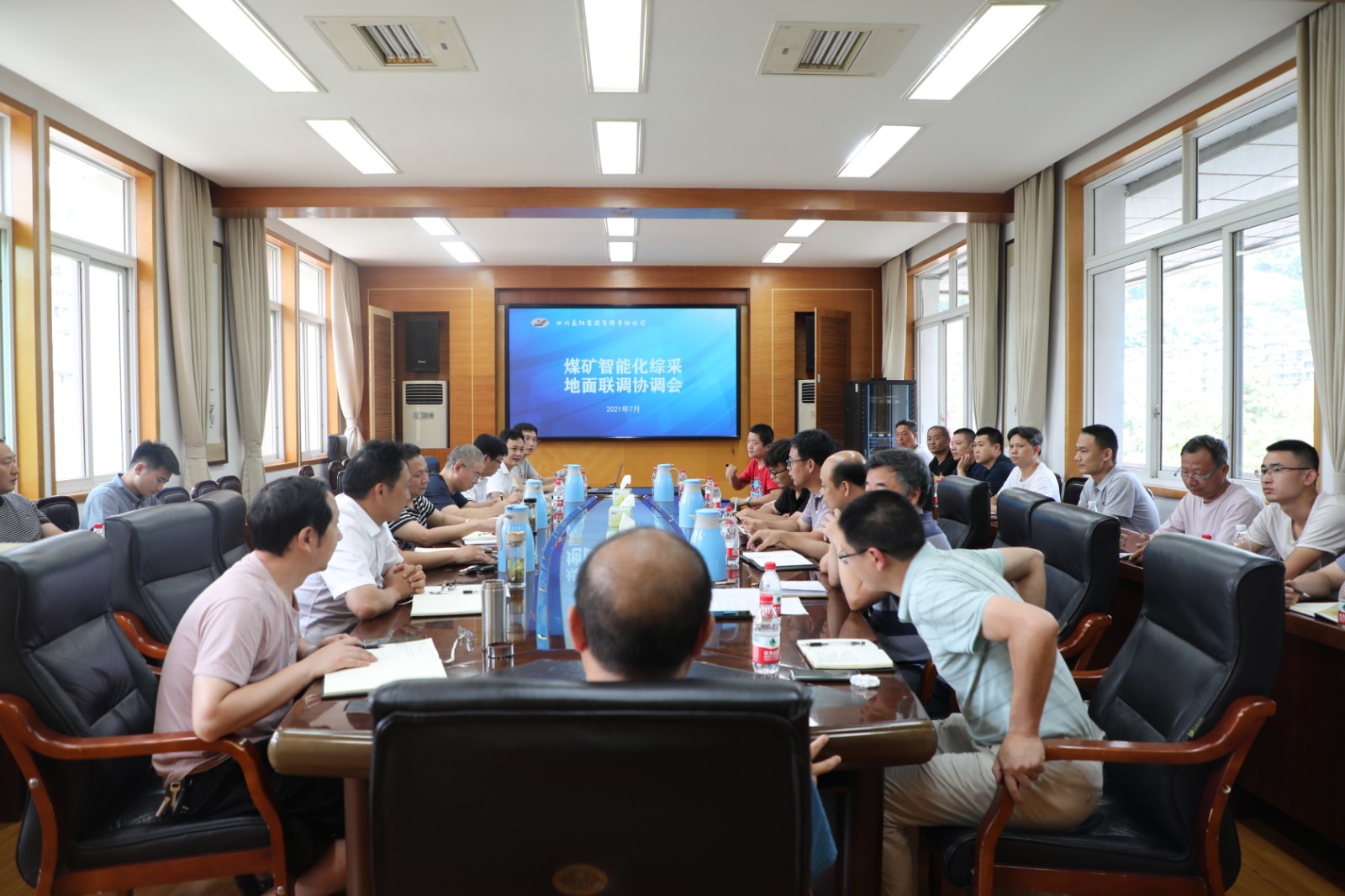 7月27日,新利(中国)召开智能化综采地面联调协调会,总经理、智能化综采项目领导小组组长范勤英,副总经理、副组长王维洪、詹本远,总经理助理丰雄龙,嘉阳煤矿矿长陈文兵,公司机电主任工程师、智能办主任刘爱明等出席协调会,智能化综采安装工作相关责任人、厂家技术人员、物供司相关人员以及公司智能化综采项目技术服务团队相关人员参加会议。