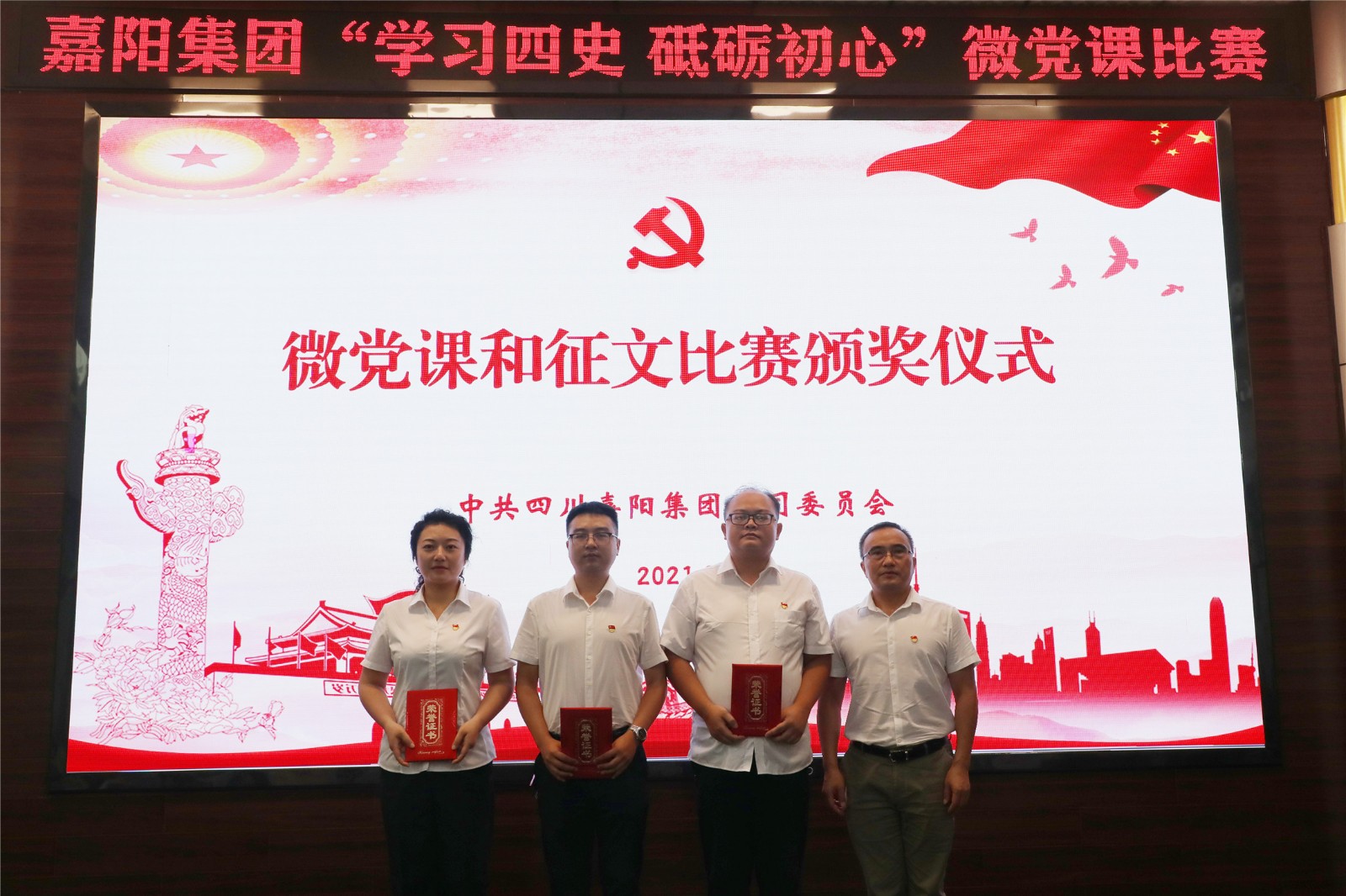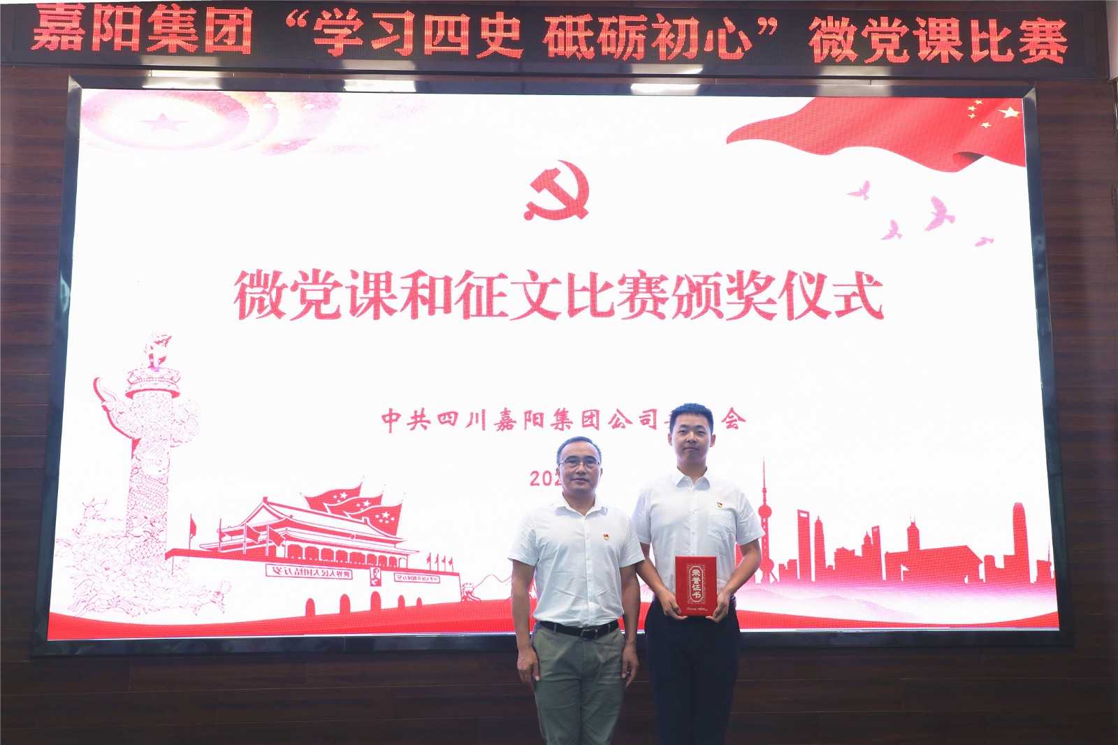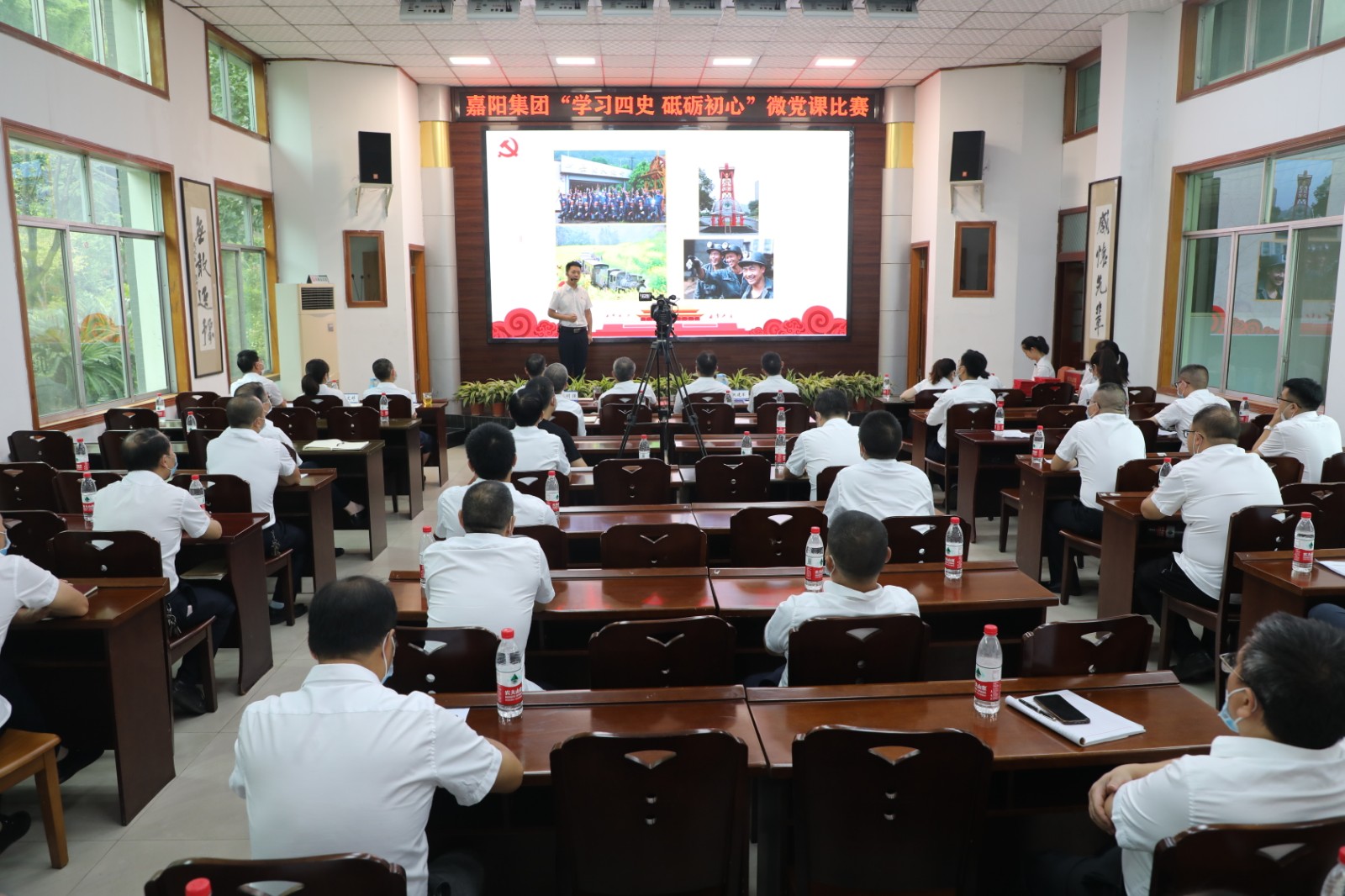 以微党课强党性、微宣讲聚能量、微交流凝合力,选手们围绕主题,将嘉阳历史与党史、企业工作与党史学习有机结合,深度诠释嘉阳精神与建党精神的一脉相承。党群工作部沈忱的《一部嘉阳史 百年奋进路》,再现了在民族危亡之际,嘉阳先辈们冒着生命危险将2000多吨设备、400多名员工抢运入川,为民族工业发展、抗日战争胜利作出不可磨灭贡献的家国情怀;技术发展部贾禄的《强化四史学习 彰显嘉阳担当》,从中国共产党成立的小故事谈起,讲述了红船精神的继承和发扬,嘉阳为了新中国的发展展现出的责任担当;嘉阳煤矿谭玮的《初心不改 青春不负》讲述了嘉阳煤矿安全调度监控中心的一群党员为了企业发展而奉献青春的故事。PPT、视频多媒体图文并茂,选手们娓娓道来、引人入胜,赢得了阵阵掌声。以赛促学内化于心,以学促干外化于行,他们用坚定的声音传播新时代的精神力量,激发职工敢于担当的内生动力,凝聚不负韶华的奋进力量。党委副书记谢建国对比赛进行点评,并向“致敬建党100周年”征文比赛获奖选手颁奖,党委书记、董事长杜勤为微党课比赛获奖选手颁奖。