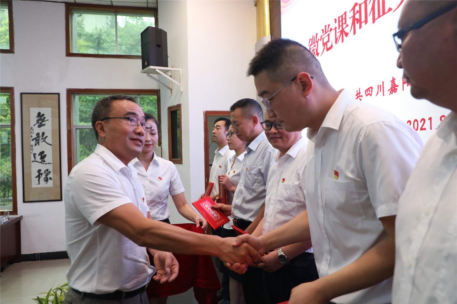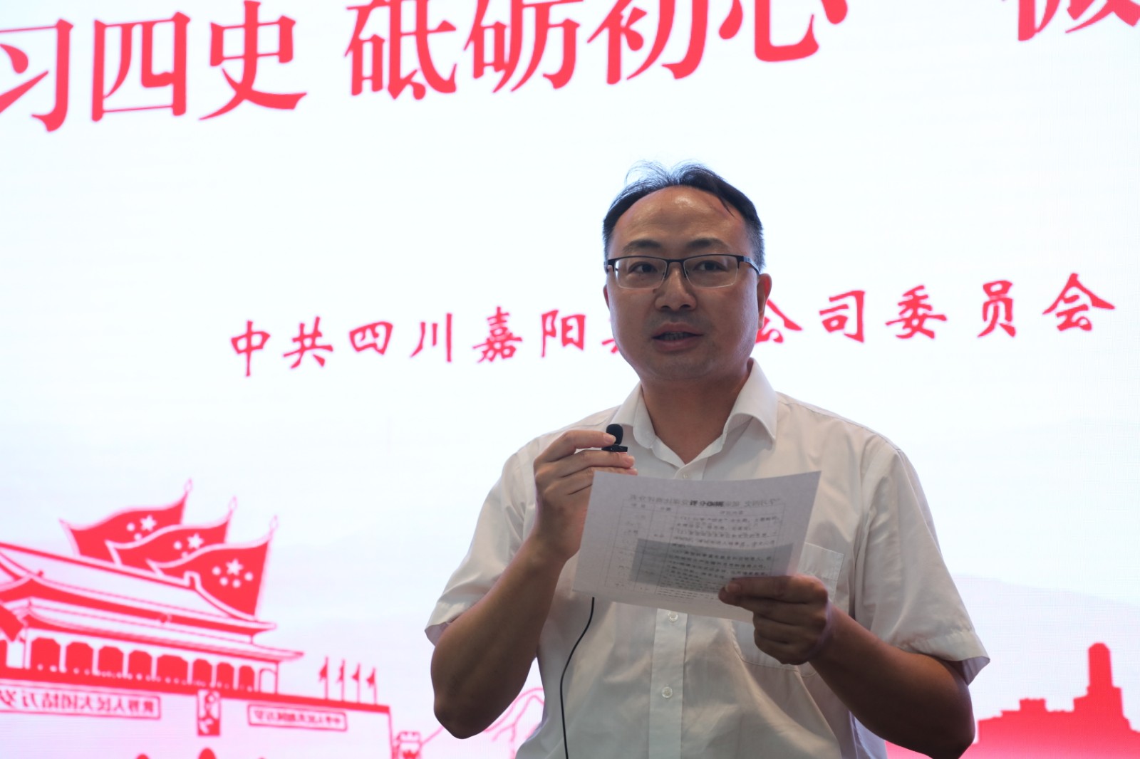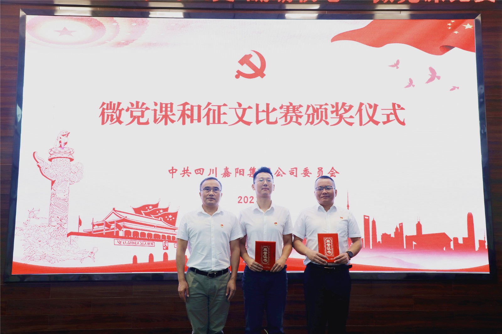 以微党课强党性、微宣讲聚能量、微交流凝合力,选手们围绕主题,将嘉阳历史与党史、企业工作与党史学习有机结合,深度诠释嘉阳精神与建党精神的一脉相承。党群工作部沈忱的《一部嘉阳史 百年奋进路》,再现了在民族危亡之际,嘉阳先辈们冒着生命危险将2000多吨设备、400多名员工抢运入川,为民族工业发展、抗日战争胜利作出不可磨灭贡献的家国情怀;技术发展部贾禄的《强化四史学习 彰显嘉阳担当》,从中国共产党成立的小故事谈起,讲述了红船精神的继承和发扬,嘉阳为了新中国的发展展现出的责任担当;嘉阳煤矿谭玮的《初心不改 青春不负》讲述了嘉阳煤矿安全调度监控中心的一群党员为了企业发展而奉献青春的故事。PPT、视频多媒体图文并茂,选手们娓娓道来、引人入胜,赢得了阵阵掌声。以赛促学内化于心,以学促干外化于行,他们用坚定的声音传播新时代的精神力量,激发职工敢于担当的内生动力,凝聚不负韶华的奋进力量。党委副书记谢建国对比赛进行点评,并向“致敬建党100周年”征文比赛获奖选手颁奖,党委书记、董事长杜勤为微党课比赛获奖选手颁奖。