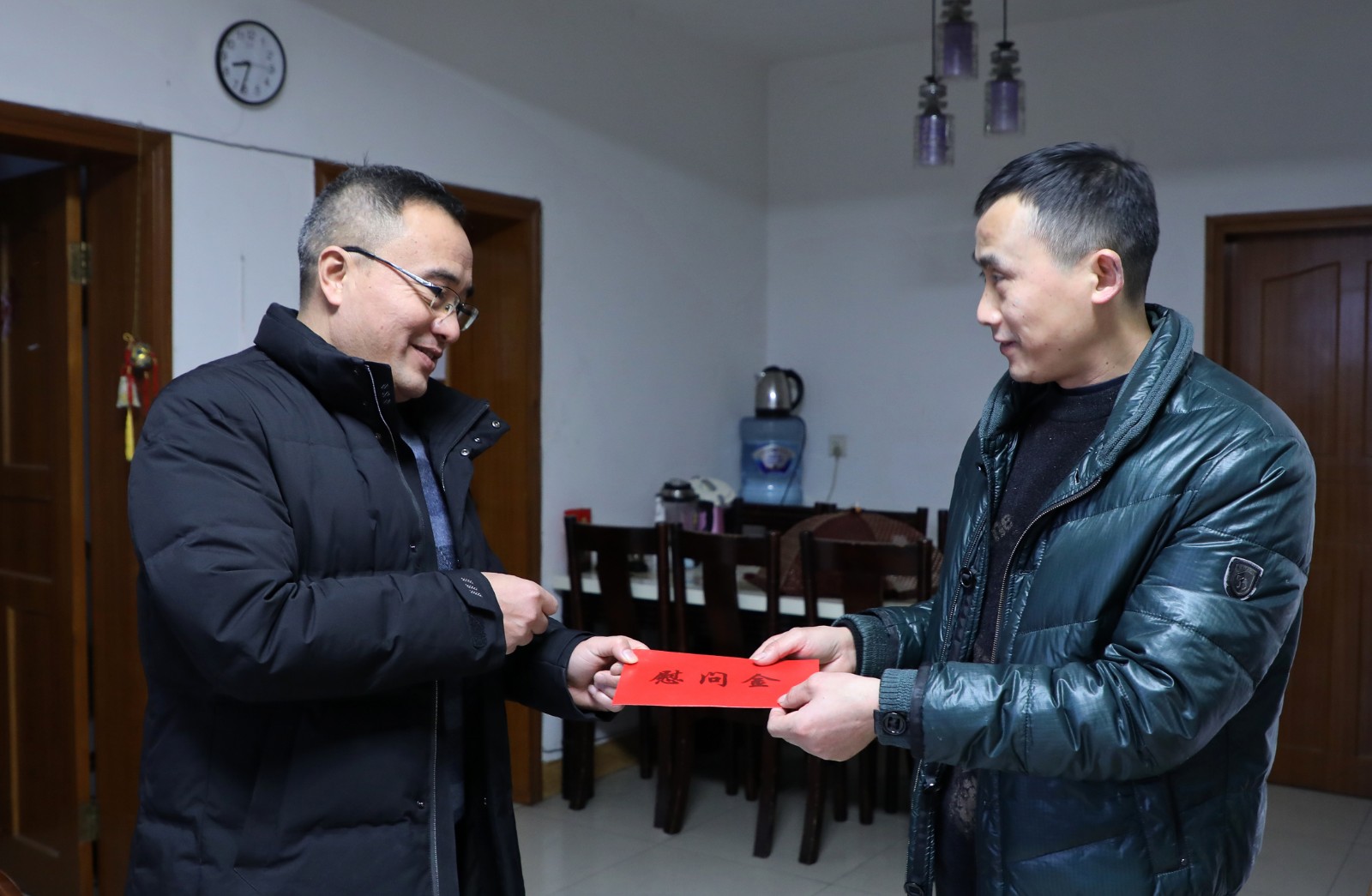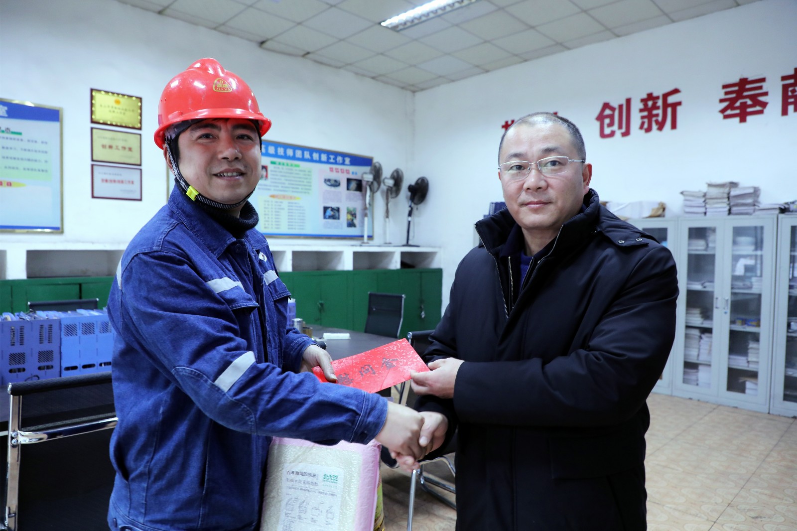 1月26日上午,党委书记、董事长杜勤带着满满的关怀走进了嘉阳煤矿职工徐德富的家中。徐德富是四川省劳模,省人大代表,现任掘进一队党支部书记。在徐德富的家中,党委书记杜勤仔细了解他的工作、学习和家庭生活。在得知他家中一切安好后,亲切的对他说,作为党支部书记,我们要抓好支部书记的主责主业,做好职工政治思想教育,抓好操作技能培训,提升职工技能水平,提高职工安全意识,紧紧围绕企业安全生产开展工作;要强化政治引领和责任担当,加强党员政治学习,发挥好支部战斗堡垒作用和党员的模范带头作用,为企业各项目标任务的完成贡献智慧力量。在新春佳节来临之际,谨代表公司党委、行政和工会来看望你们,祝你们全家阖家欢乐、幸福安康。