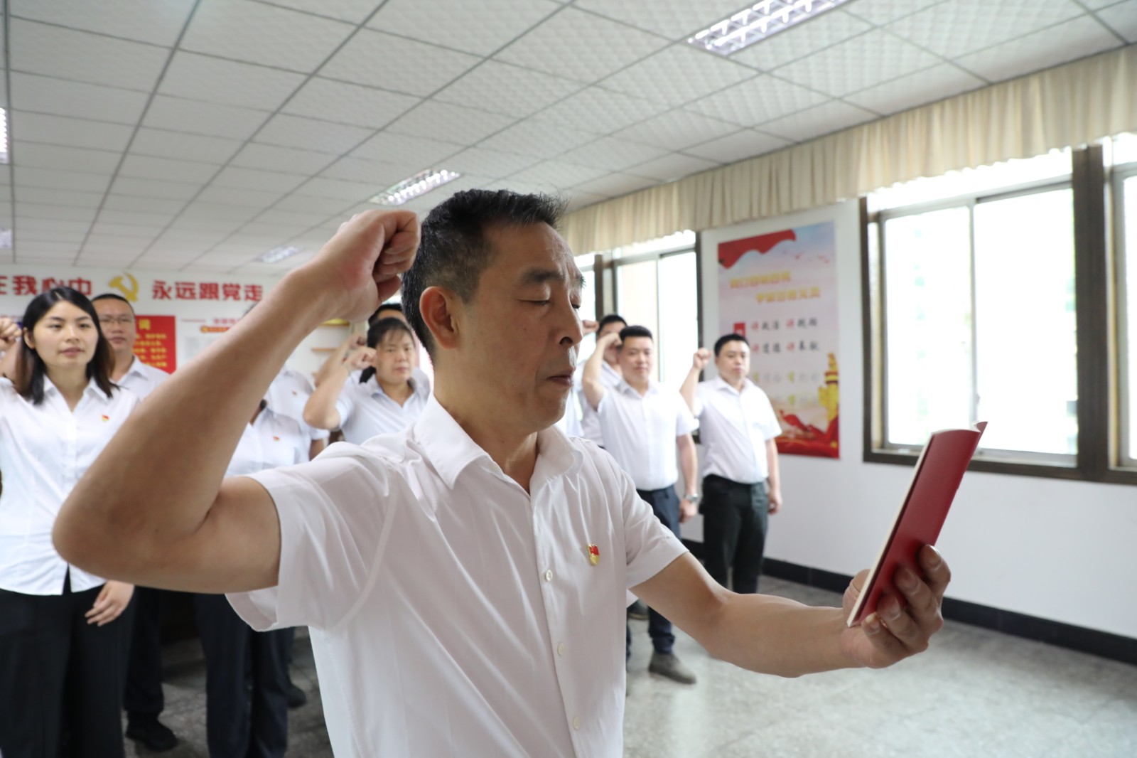 7月1日,新利(中国)公司党委举行新党员入党宣誓仪式,15名新党员面向鲜红的党旗,高举右拳,庄严宣誓。