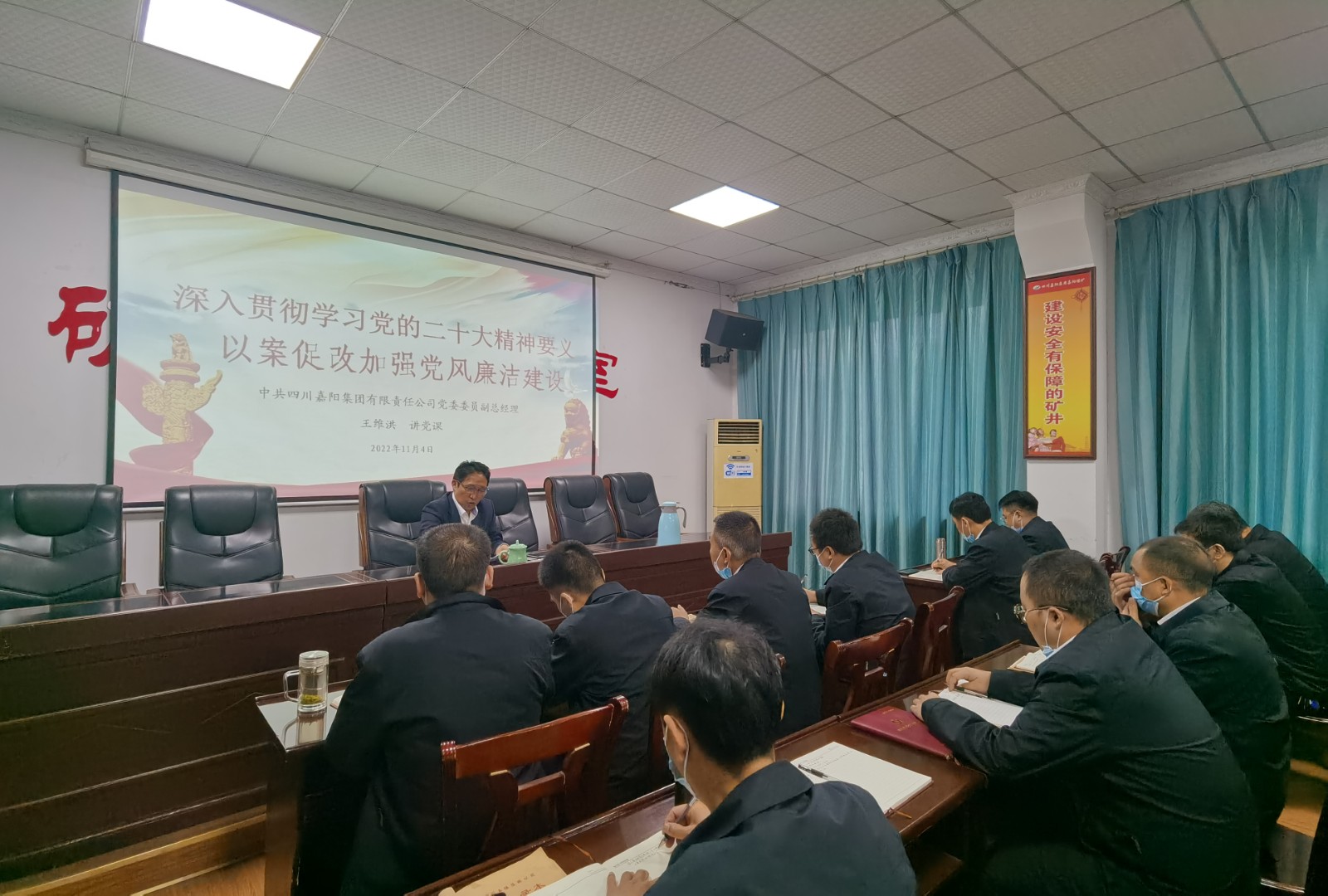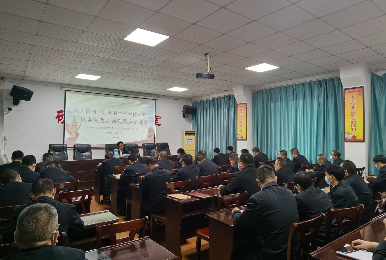 11月4日,按照新利(中国)党委安排,党委委员、副总经理王维洪、金大钧分赴基层队站,为嘉阳煤矿、财务系统、营销公司党员、管理人员进行廉洁教育党课宣讲,党课内容翔实、发人深省。