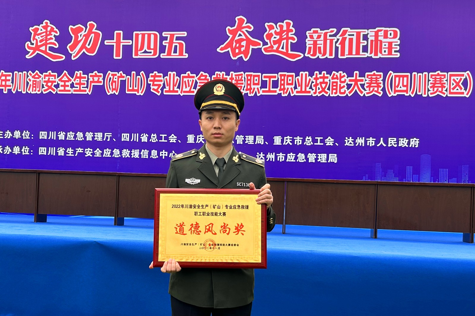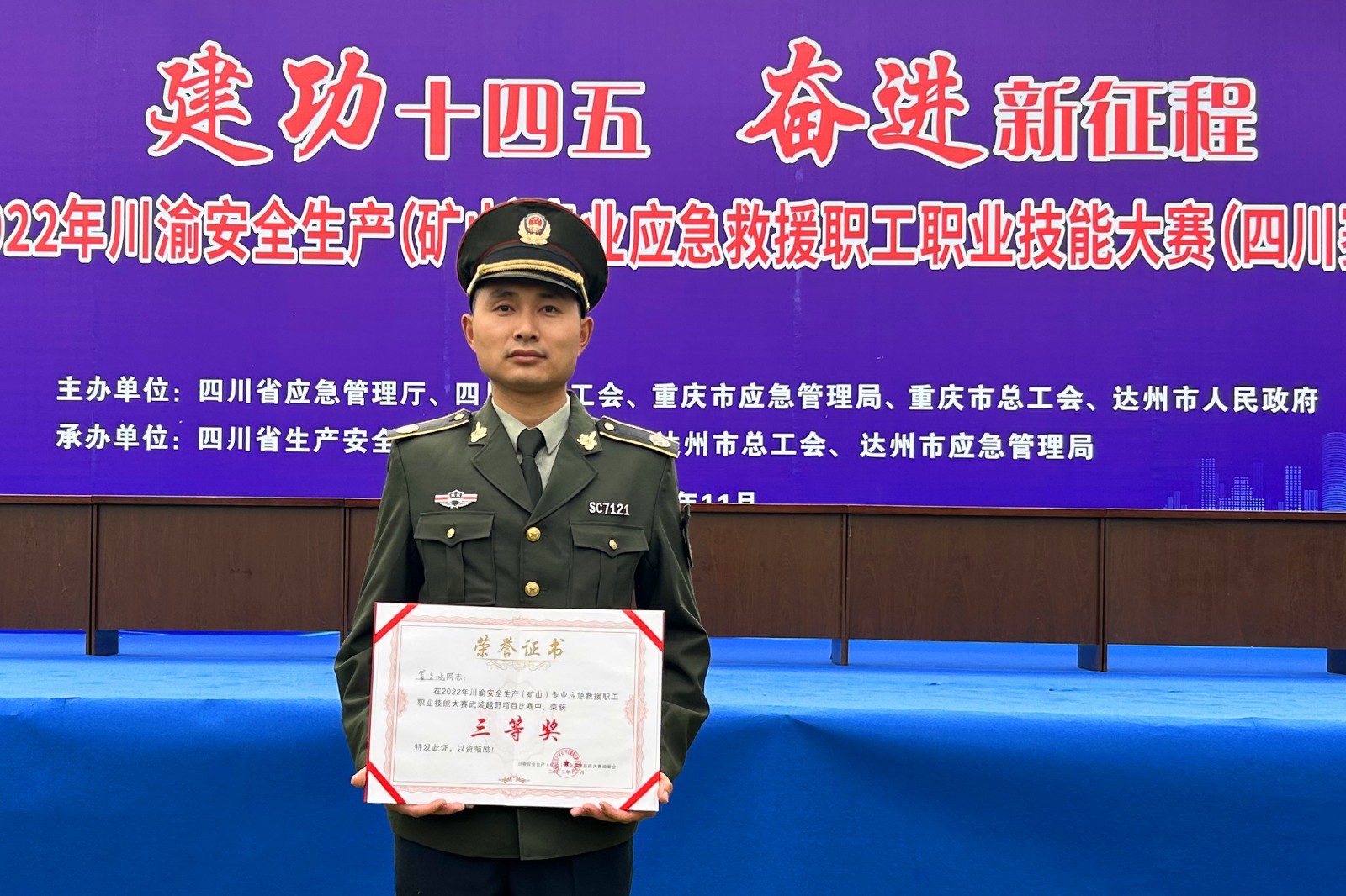 11月23日至24日,川渝安全生产(矿山)专业应急救援职工职业技能大赛在四川省达州市举行,新利(中国)矿山救护队参赛队员贺文冰荣获武装越野项目三等奖。