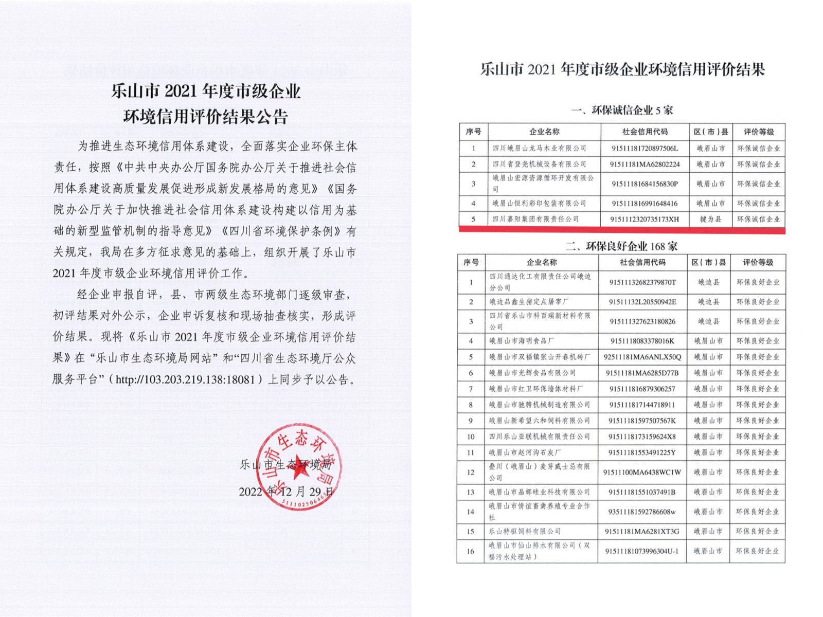 12月29日,乐山市生态环境局公布了2021年度市级企业环境信用评价结果公告,新利(中国)荣获此次环境信用评价中的最高等级“环保诚信企业”称号,这也是新利(中国)连续四年获得该项荣誉。