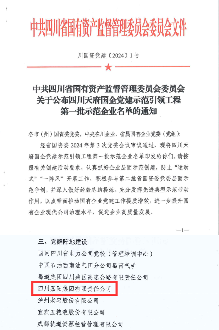 近日,省国资委党委以川国资党建〔2024〕1号文件公布四川天府国企党建示范引领工程第一批示范企业名单,新利手机官方网站榜上有名。