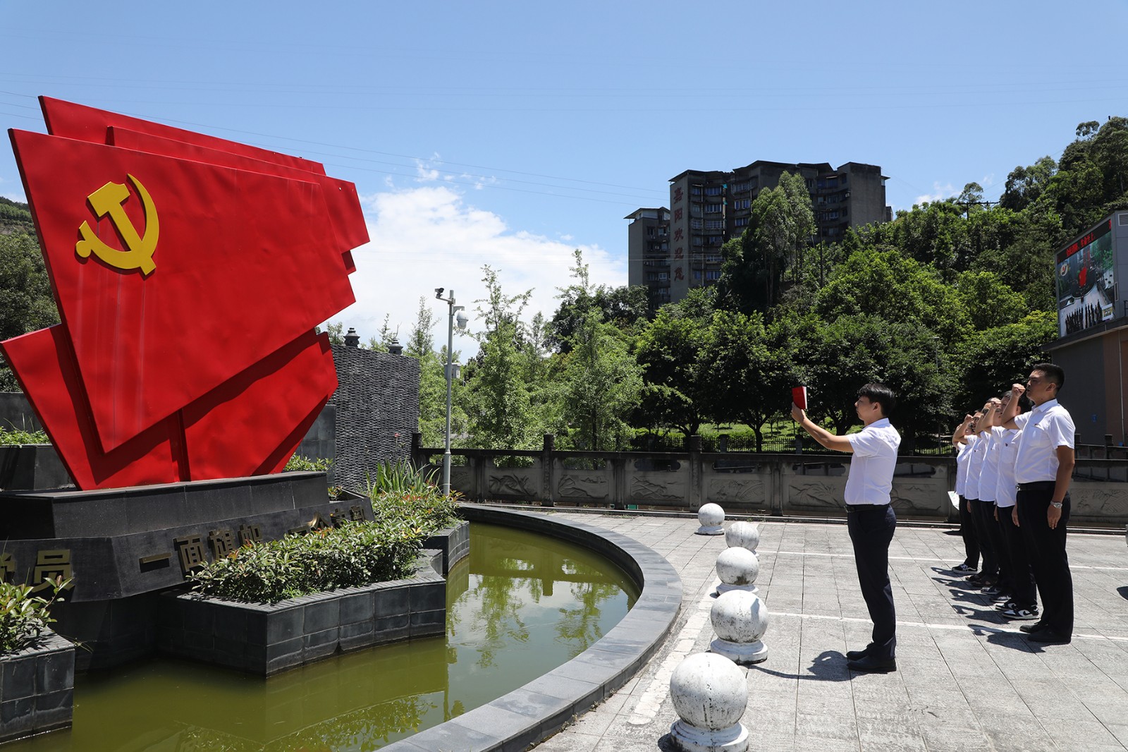 7月1日,集团公司举行新党员入党宣誓仪式,来自机关和基层各单位的5名新党员仰望党旗庄严宣誓。