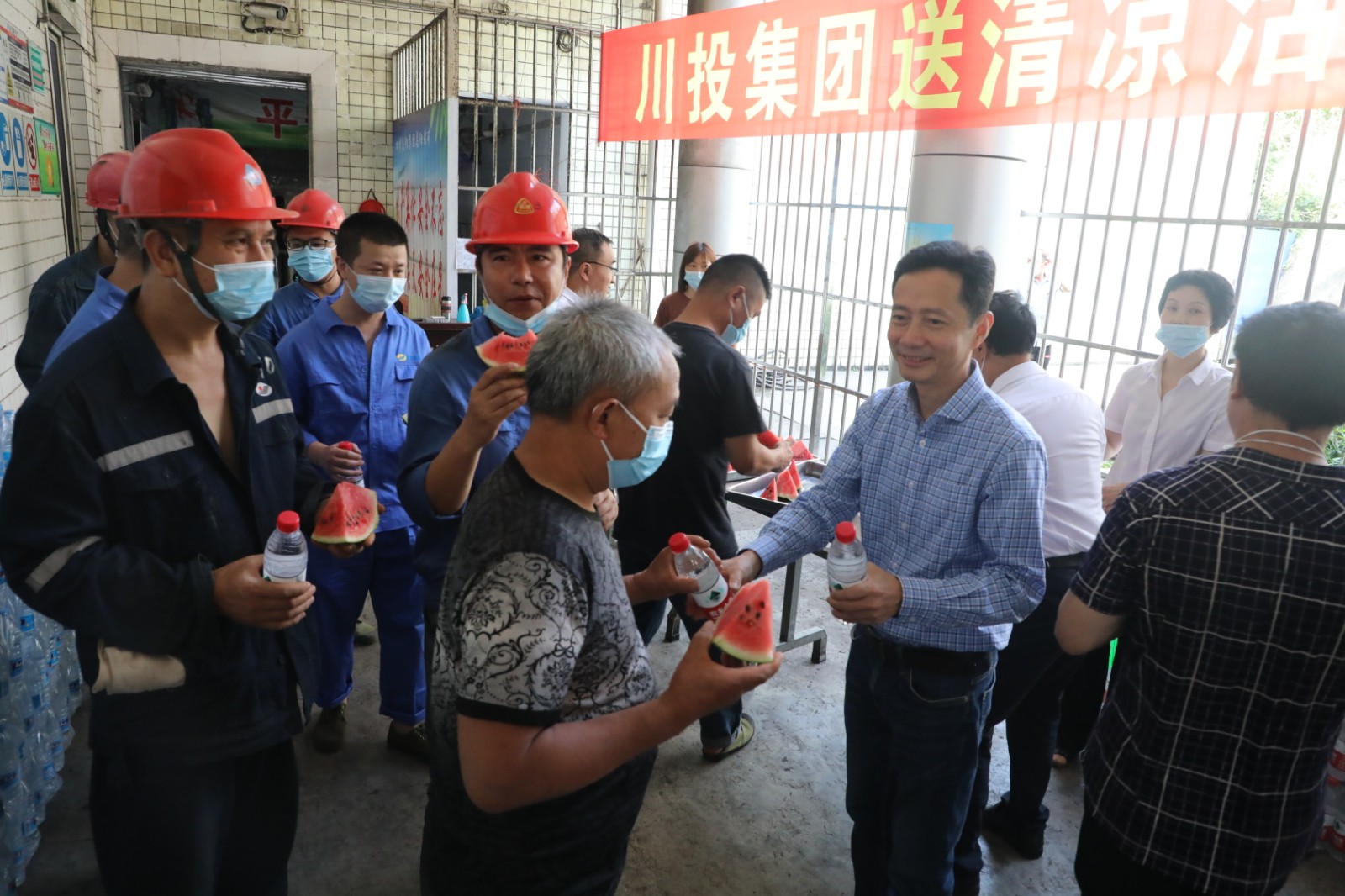 6月7日,川投集团副总经理张昊、工会副主席白翠红一行到嘉阳看望慰问一线高温岗位职工,为他们送上清凉和关怀。